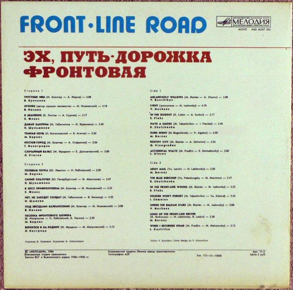 - Recorded At – Всесоюзная Студия Грамзаписи