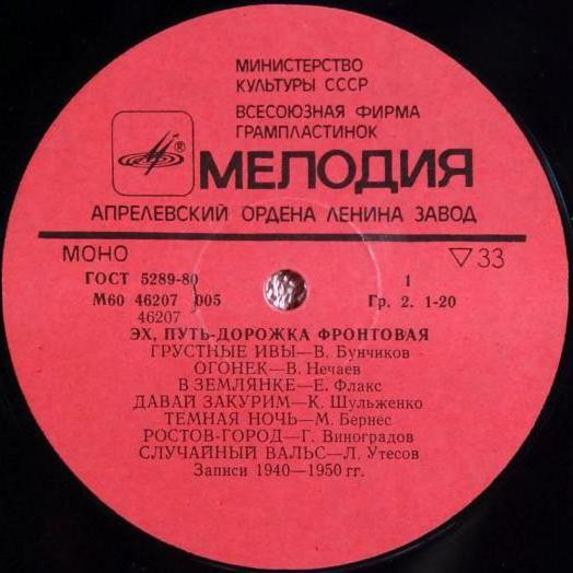 | B6 | Марк Бернес– | Песенка Фронтового Шофера | 2:30 |
